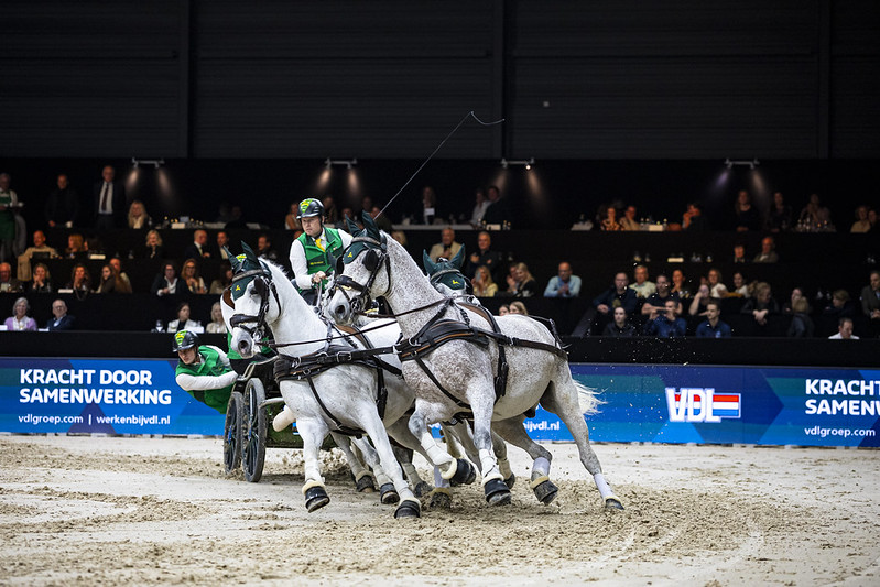 Chardon: “Ik ben begonnen met het span waar ik vorig jaar mee geëindigd ben. Toen heb ik twee nieuwe paarden in het span gebracht, rechtsachter en linksvoor, waarvan ik geloof dat ze echt voor de winst mee kunnen doen. Dat hebben ze vorig seizoen ook laten zien. Ik rijd pas volgende maand in Genève voor de punten en was dus erg blij met deze wildcard. Zo kan ik wat eerder in het seizoen beginnen. We zijn nog niet helemaal op stoom. Ik had wel degelijk de snelheid, maar op de tweede dag wat kleine miscommunicaties, waardoor ook ballen vielen. In het tweede gedeelte miste ik nog wat scherpte als ik dat vergelijk met Boyd. Die heeft dit span al een paar keer meegenomen van huis, in Lyon gewonnen en is duidelijk al op stoom. Ik zie echter de potentie bij mijn span en heb er veel geloof in na deze eerste graadmeter. Het was een schitterende wedstrijd hier en dit biedt veel perspectief.”