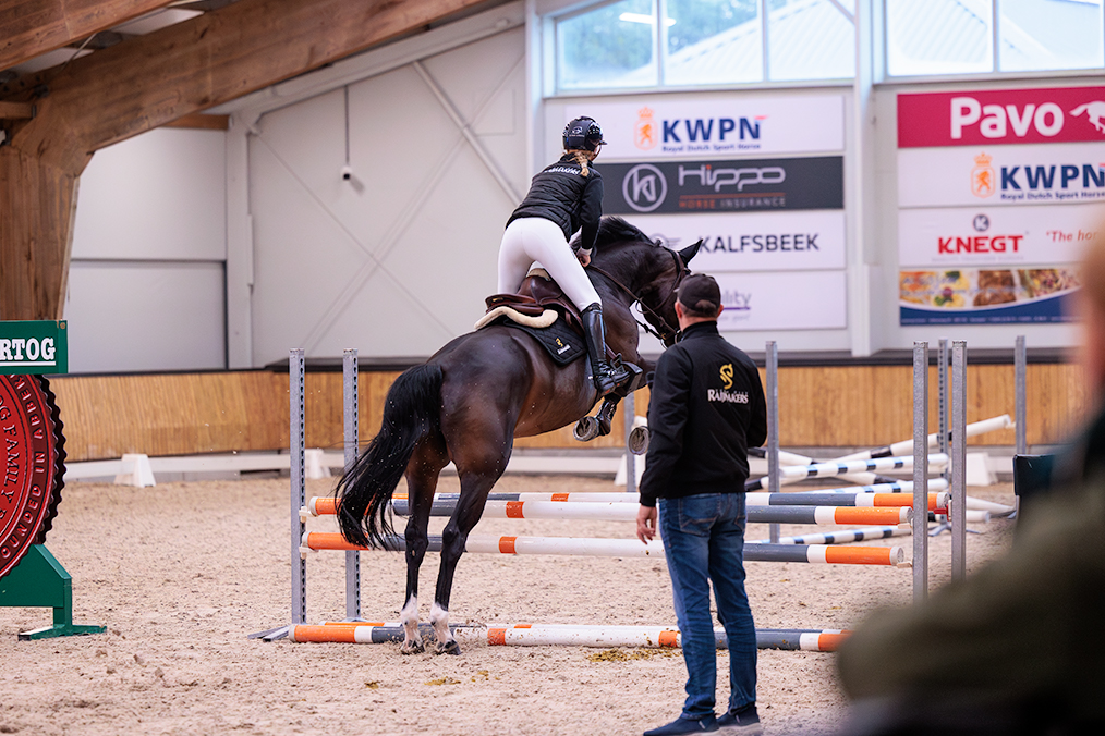 Nog even wat het barrage rijden betreft, dat neemt Piet al vanaf het begin van de opleiding mee door regelmatig te oefenen met het wat sneller rijden en bochtjes draaien. Hij vindt dat het paard moet leren om de sprong zelf op te zoeken en spelenderwijs moet leren om snel te draaien. “Dat is een proces en gaat niet meteen vanaf het begin af aan gelijk goed. Daarom wil je dat al in een vroeg stadium meenemen om daarin te groeien.”