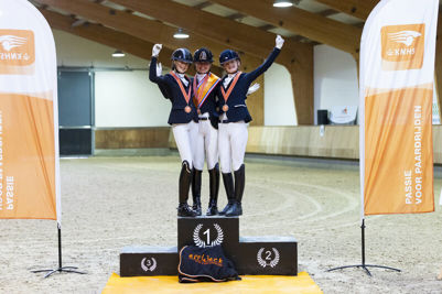 - Nyke Sophie Genee met Abbey, foutloze barrage in 34.21 (0/55.60 en 0/34.60), KNHS Regio Friesland